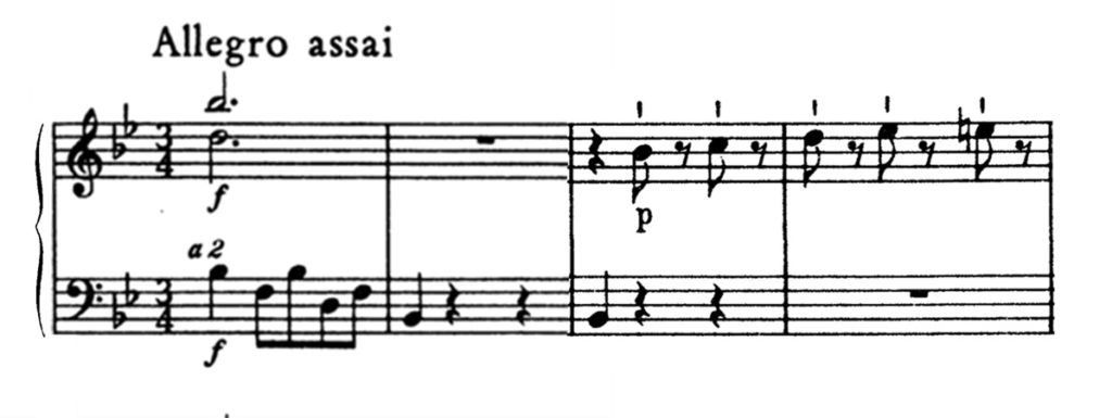 この節の目的は、第4楽章のアレグロ・アッサイと第2楽章のアンダンテ・モデラートの、すなわち変ロ長調器楽曲に特有の、ブッファ調アレグロと一種の敬虔さをを見せる緩徐楽章の取り合わせの様相をみることである。